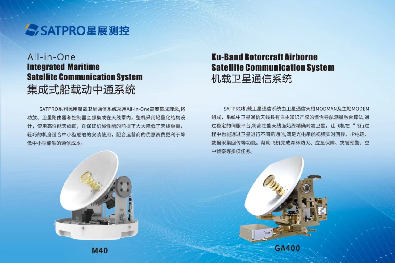 此次展会,Ag九游会测控携带FS100高通量卫通无人机 、M40 Ku波段集成式船载动中通系统、GA400 Ku波段卫星通信系统、SatBook045 Ku波段及SatPort045 Ka波段高通量卫星自动便携站等覆盖海陆空不同场景的高精尖应急通信设备亮相会场。